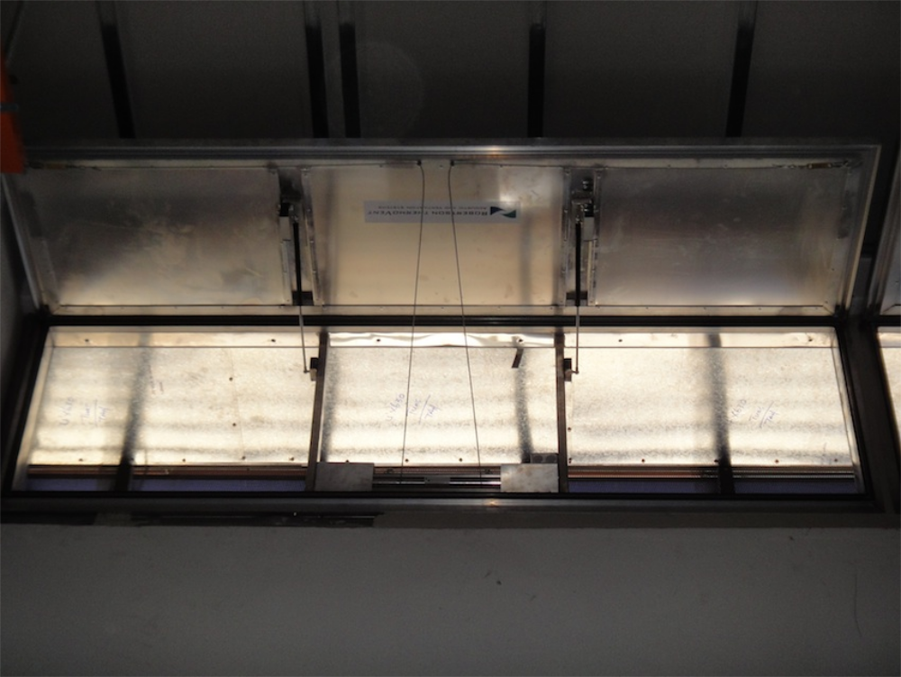 When powered, the smoke curtain will be retracted and held above ceiling level.